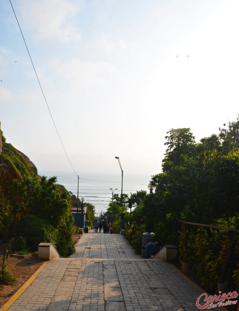 Ora, se Barranco era um antigo balneário de férias obviamente tem praia… e praia com areia. Diferente de Lima onde as praias são de pedras, as águas de Barranco têm fama pelo fato de serem acessadas pela areia. O distrito de Barranco também se encontra em um penhasco e aí vem uma parte que para mim, é um dos pontos altos do charme do lugar.