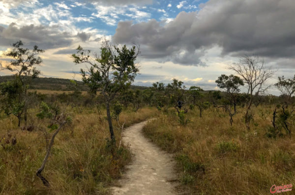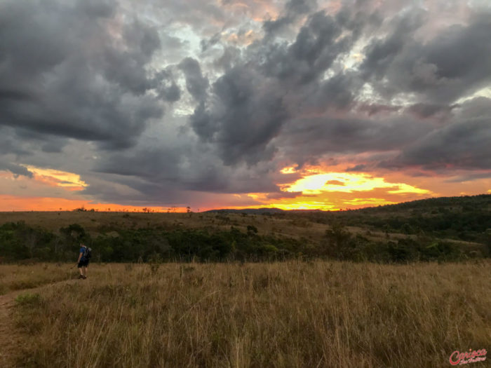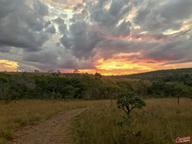 Logo após a entrada uma enorme área verde te recebe de braços abertos e se divide em Camping/chalé, e a sede, onde é cobrado o ingresso. Por 25 reais você conhecerá uma das cachoeiras mais bonitas que já vimos até hoje: a Cachoeira do Cordovil. Mas não pensem que só tem ela! A Fazenda Volta da Serra ainda conta com mais três cachoeiras, e a trilha… ah, a trilha! Sem dúvidas foi uma das caminhadas mais gostosas que já fizemos. Até porque, a união de alguns paredões com a vegetação do cerrado combinam de uma forma perfeita. E como se não bastasse, ainda tem o pôr do sol para resultar em um cenário incrível para um fim de dia.