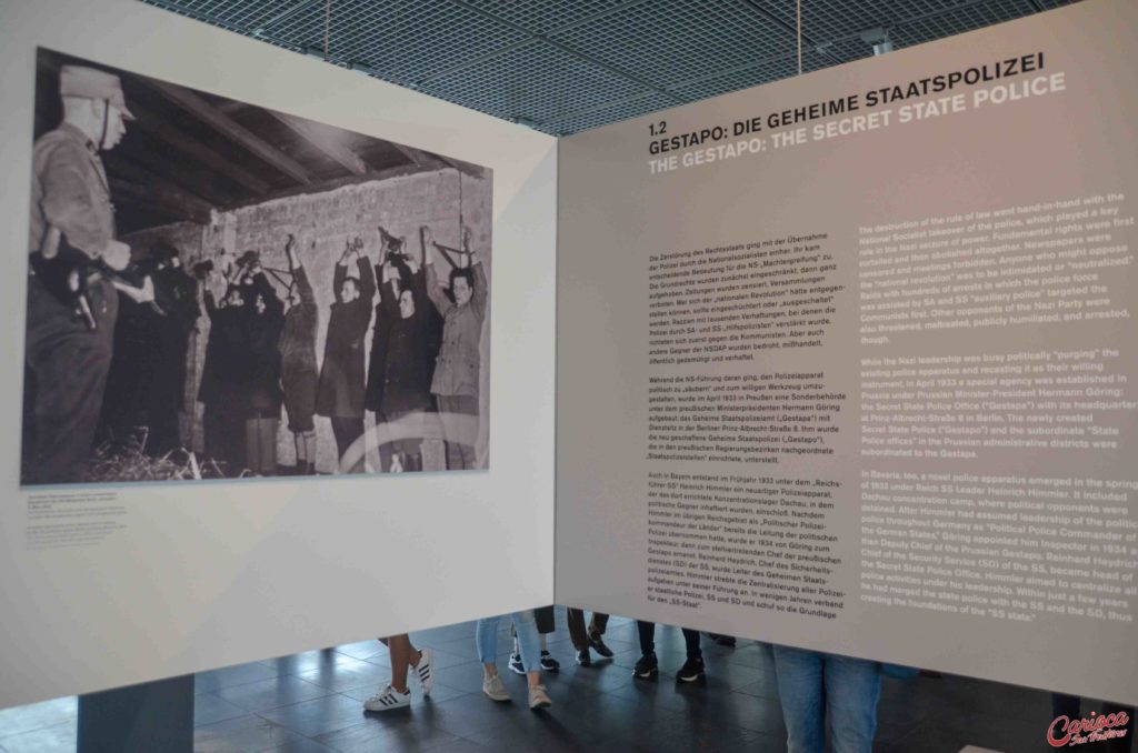 Em sua parte interna há uma exposição enorme com fotos, matérias de jornais e dados históricos sobre essas forças de segurança do regime. Além disso, também há muito material contando como foi a atuação da polícia e do exército nazista durante o holocausto. Algumas imagens chegam a chocar e nos fazem pensar em como aquilo tudo realmente aconteceu. Já na parte externa há sempre uma exposição temporária, mas eu confesso que não dei muita bola. Minha atenção foi totalmente desviada para um pedaço original do Muro de Berlim que tem por lá.