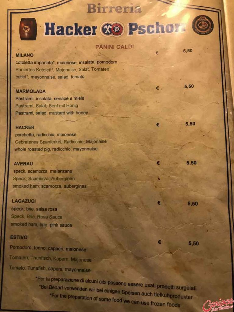 Lembra da tal mistura gastronômica entre elementos da culinária germânica com a italiana? Então, a Hacker Pschorr é um exemplo claro disso. A típica cervejaria de Munique tem uma filial em Cortina d’Ampezzo que fica sempre cheia e com fila de espera.