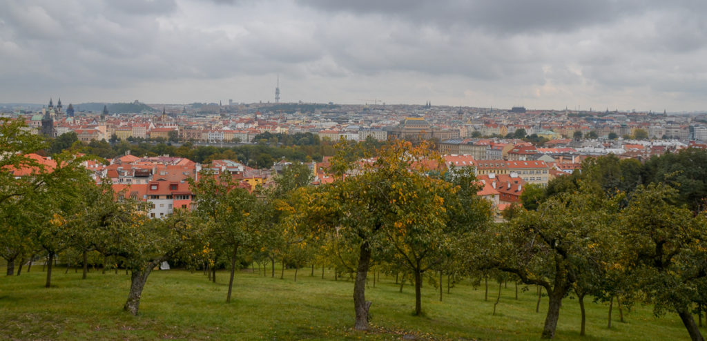 Para chegar até o parque a melhor opção é primeiro pegar o metrô até a estação Malostranská e em seguida pegar um tram. As linhas 12, 20 ou 22 vão servir, e você seguirá até estação Ujezd. A partir daí você tem duas opções: pegar o funicular até o parque ou então subir as colinas a pé. Como nós já estávamos passeando pelo bairro de Malá Strana, resolvemos encarar as colinas. Foi cansativo? Foi. Mas o caminho rende um cenário muito bonito.