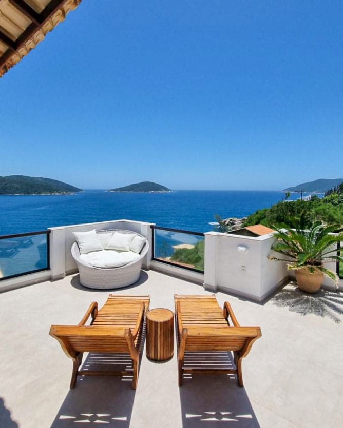 Com piscina privativa e vista panorâmica, a Casa Mykonos é um dos destaques em Arraial do Cabo.
